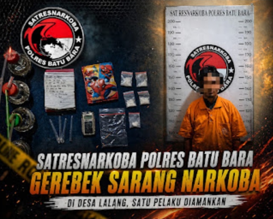 Gerebek tersebut berdasarkan Surat Perintah Nomor Sprin/143/IV/RES.4/2026 tertanggal 24 April 2026, dan dipimpin langsung oleh Kasatresnarkoba AKP Arifin Purba, S.H., M.H., dengan melibatkan personel Satresnarkoba, Sat Samapta Polres Batu Bara, serta perangkat Desa Lalang, Kecamatan Medang Deras.