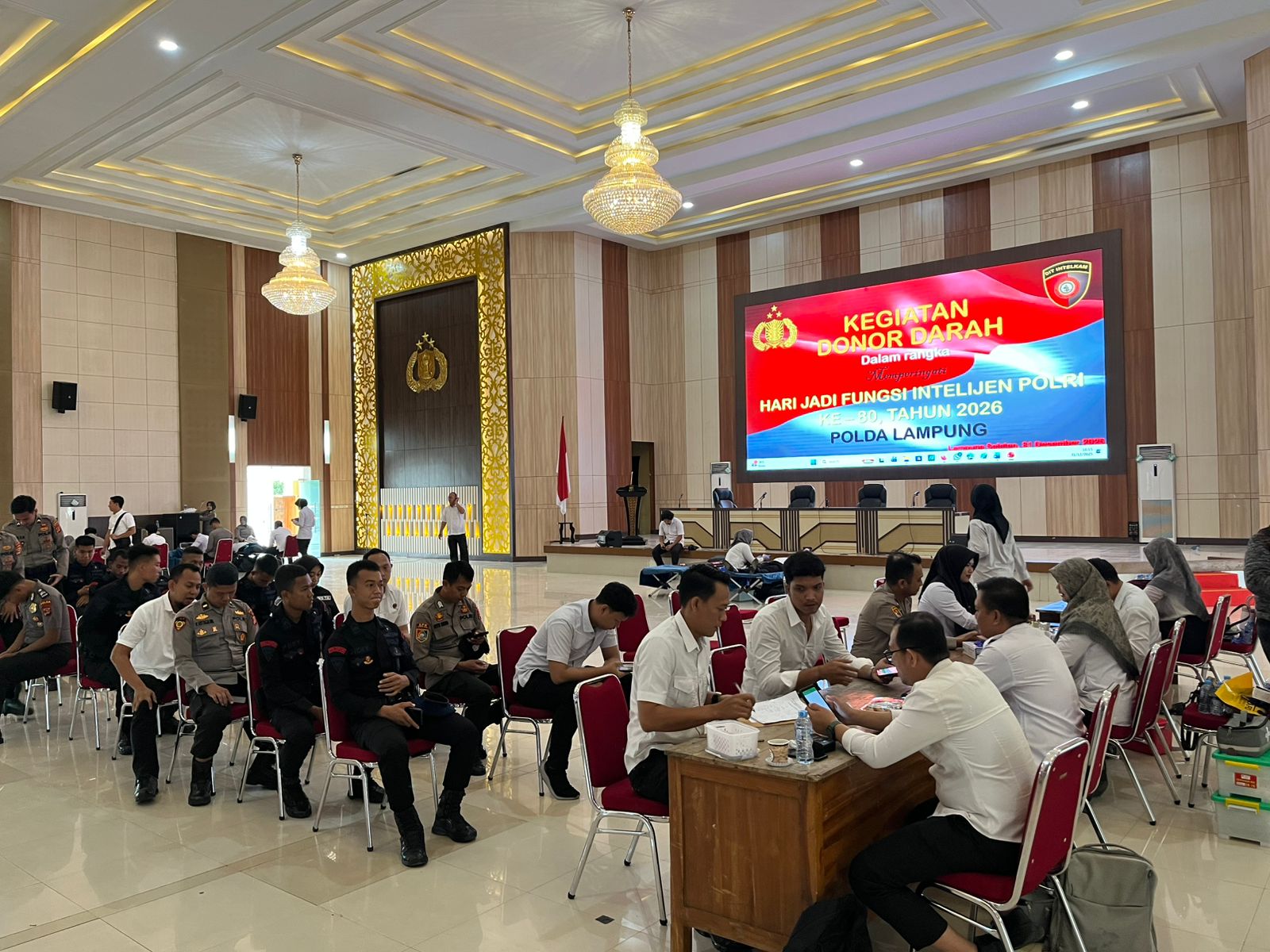 Kegiatan donor darah ini melibatkan tenaga kesehatan dari PMI dengan dukungan penuh jajaran pejabat utama Ditintelkam Polda Lampung serta personel lintas fungsi.