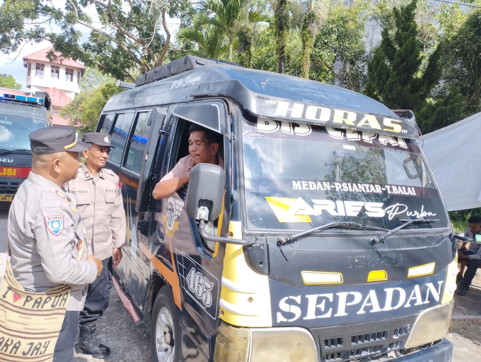 Kegiatan yang merupakan bagian dari Operasi Ketupat Toba 2026 ini dipimpin langsung oleh Kasat Binmas AKP Zainuddin S. Petugas menyambangi satu per satu armada bus dan berdialog dengan para sopir guna memberikan imbauan keselamatan jalan raya.