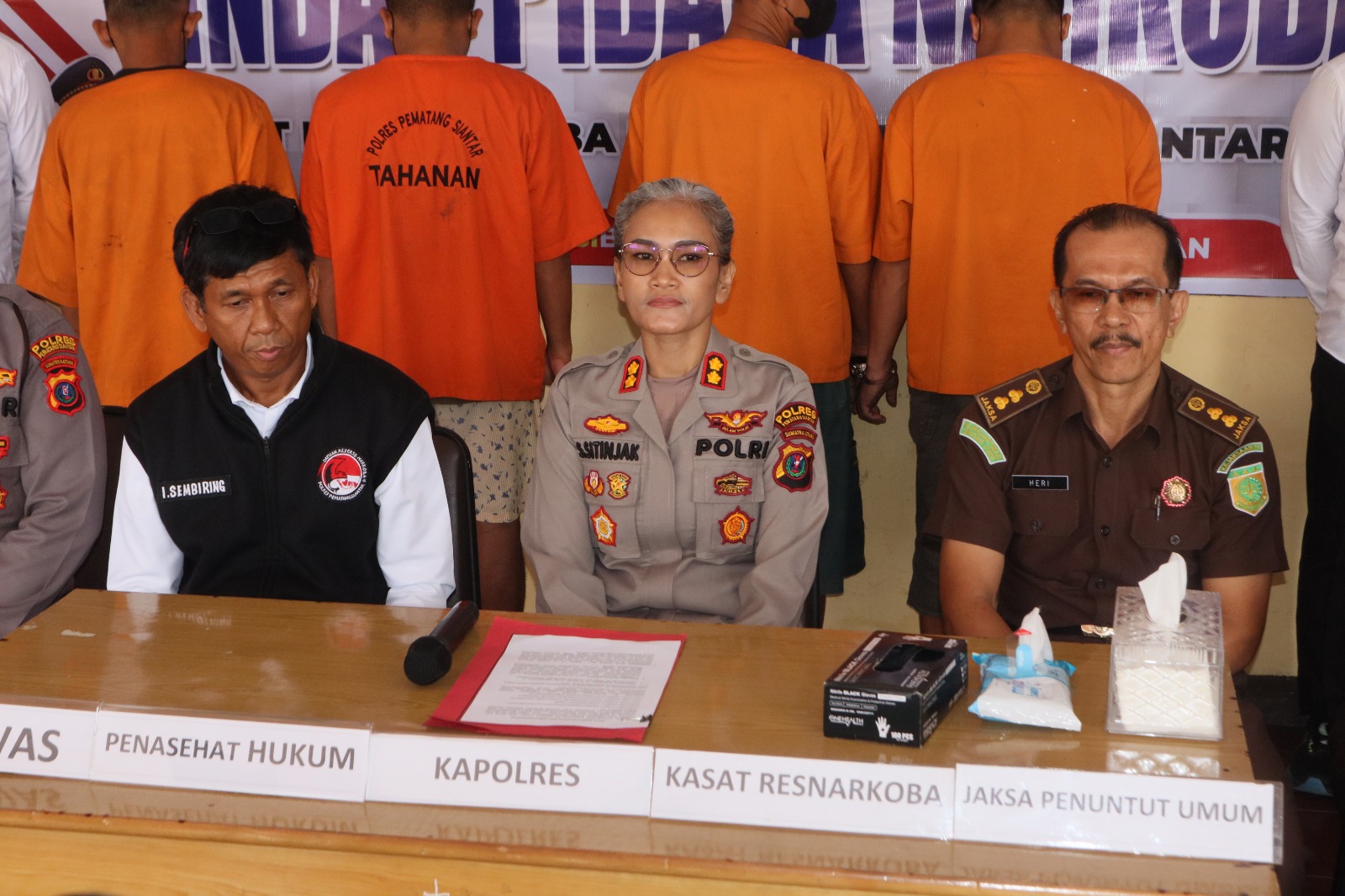 Tampak hadir Kasat ResNarkoba AKP Irwanta Sembiring, S.H. M.H, Kasiwas IPTU Arwansyah Batubara, Ps. Kasi Humas IPTU Agustina Triyadewi, Jaksa Penuntut Umum (JPU) Kejari Pematangsiantar Heri Santoso, S.H dan Yovita Morina Tarigan, S.H.