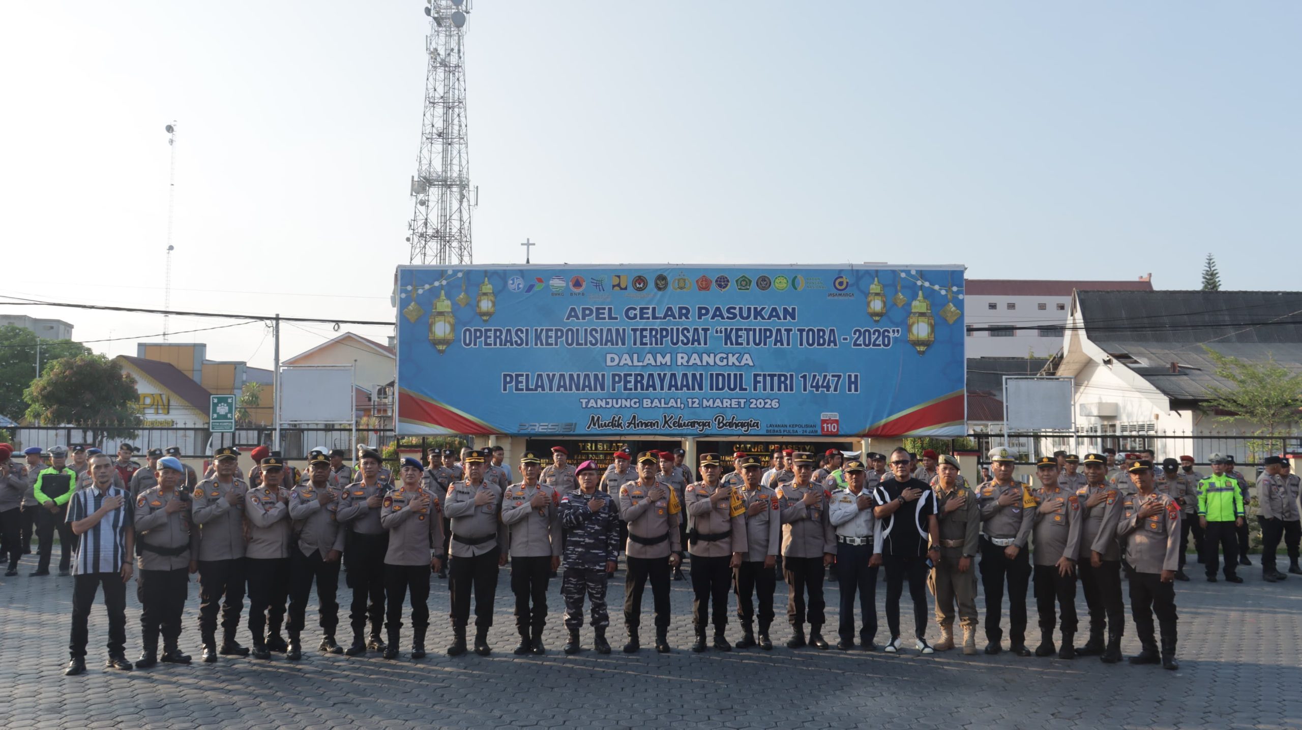 Sumut-mitranegaramntv.com Guna menjamin kenyamanan masyarakat dalam menyambut Hari Raya Idulfitri 1447 H, Polres Tanjungbalai menggelar Apel Gabungan Pelepasan Personel Pengamanan Pawai Takbir Keliling di Lapangan Apel Mapolres Tanjungbalai, Jumat sore (20/03/2026)