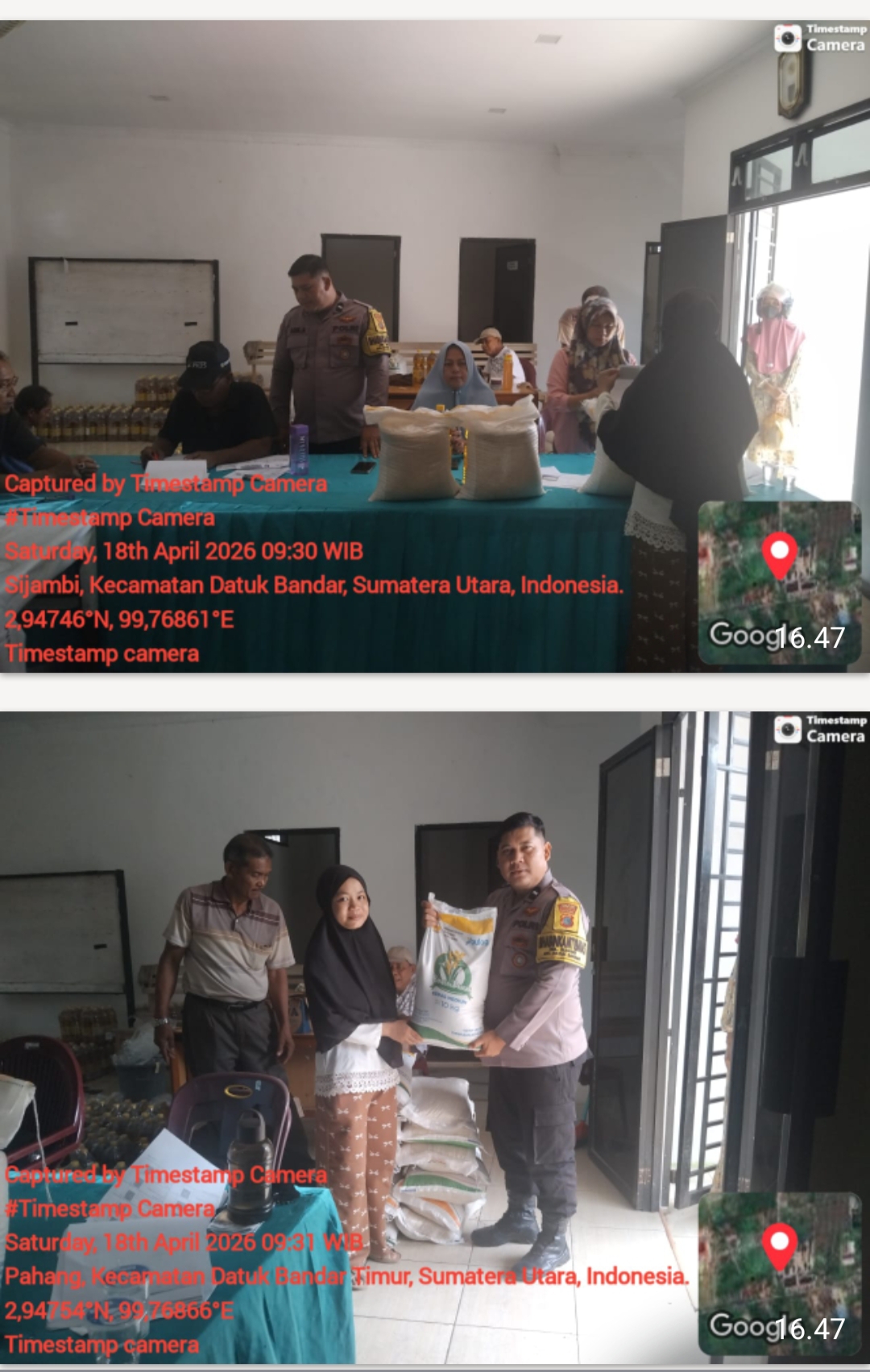 Sumut-mitranegaramntv.com Guna memastikan program pemerintah berjalan aman dan tertib, Bhabinkamtibmas Kelurahan Sijambi, Aipda Ade Arwan, melaksanakan pengawalan serta monitoring pembagian bantuan pangan di Kantor Lurah Sijambi, Kecamatan Datuk Bandar, Kota Tanjungbalai, Sabtu (18/04/2026)