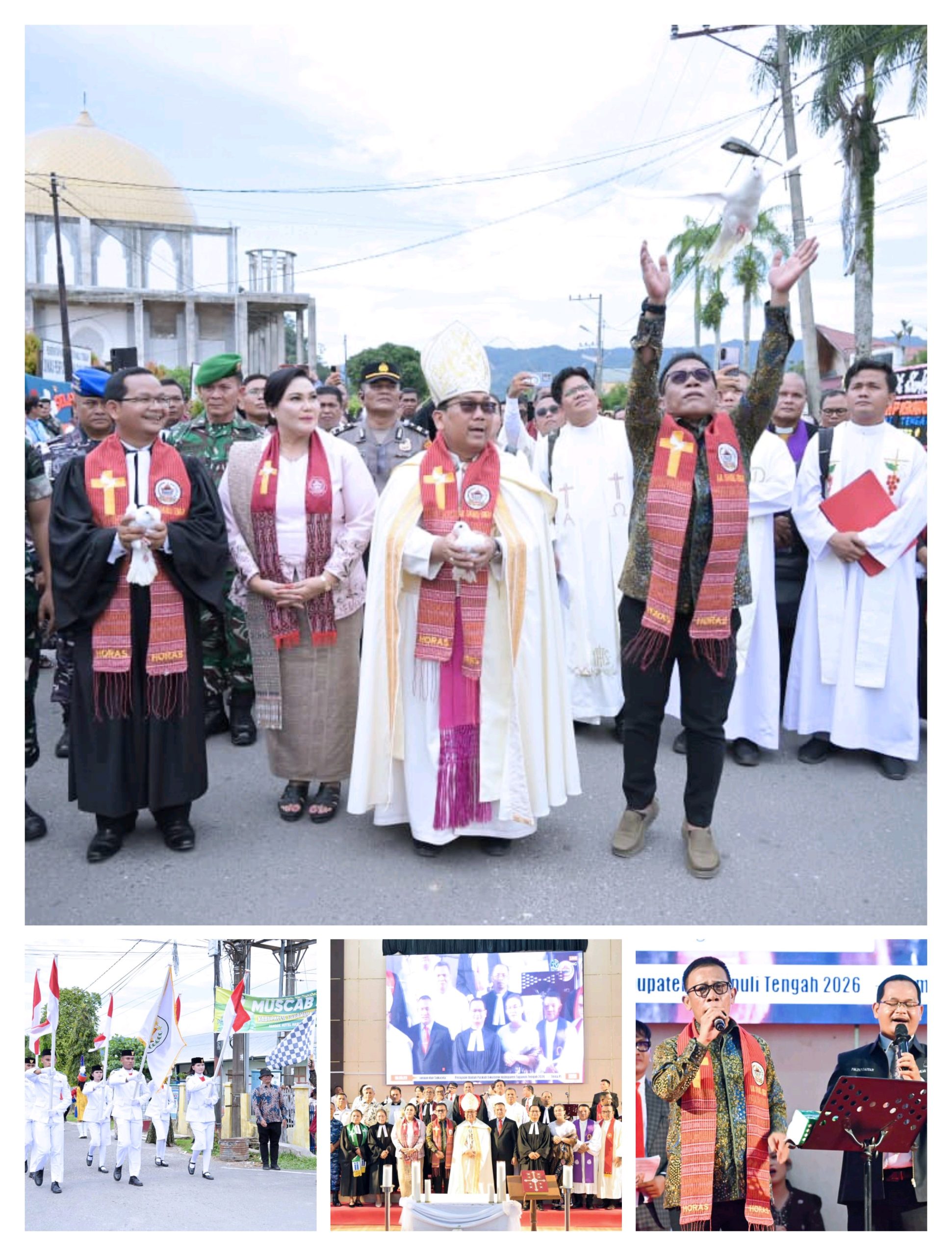 PANDAN Sibolga ( Sumut ), Mitranegaramntv.com – Pemerintah Kabupaten (Pemkab) Tapanuli Tengah (Tapteng) pada hari Kamis, 23 April 2026 bertempat di Gedung Serbaguna Pandan melaksanakan Perayaan Paskah Oikumene Kabupaten Tapteng Tahun 2026. Perayaan Paskah ini mengusung tema “Kristus bangkit membarui kemanusiaan kita (2 Korintus 5:17), dan sub tema “Tapanuli Tengah bangkit lebih kuat dalam kesederhanaan dan sukacita.”