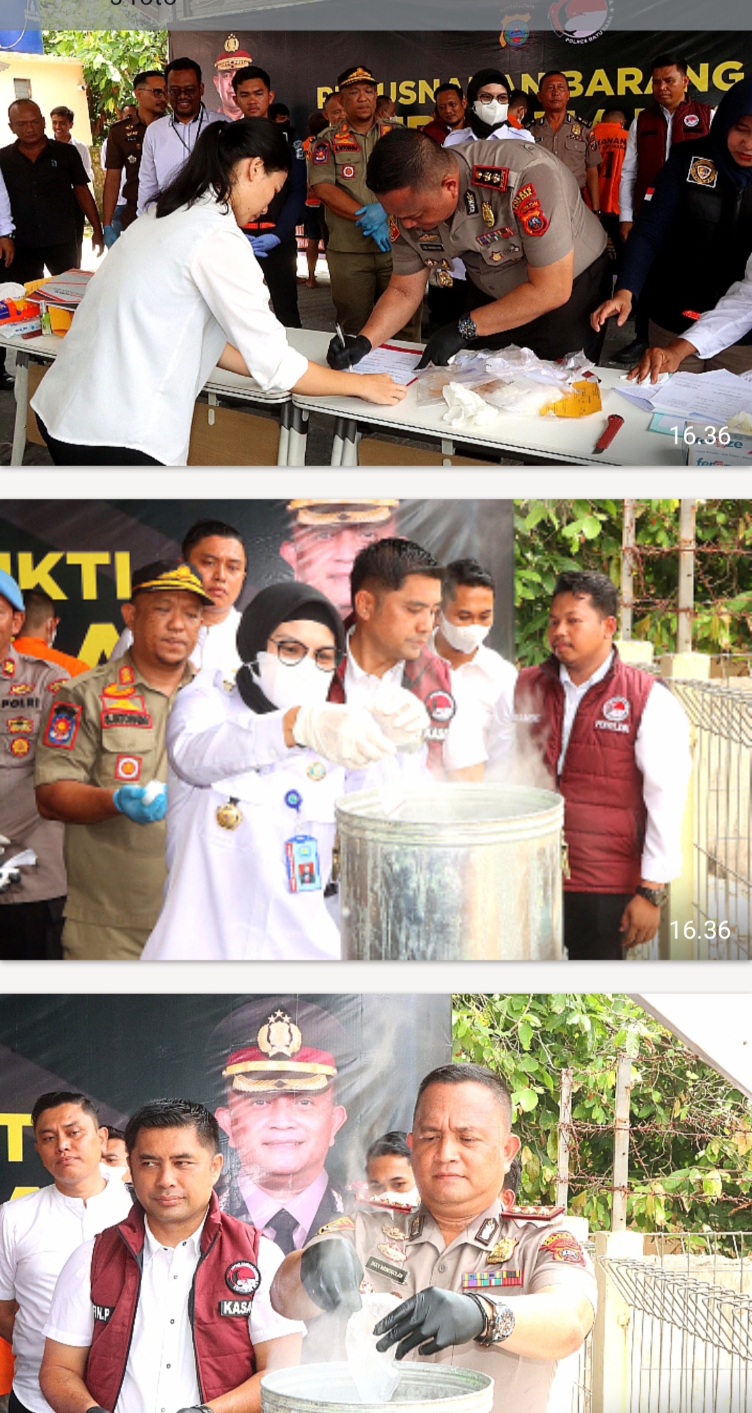 Selanjutnya, pihak kepolisian juga melakukan pemusnahan barang bukti narkotika dari empat kasus berbeda yang telah selesai melalui proses hukum. Total keseluruhan barang bukti shabu dari keempat kasus sebelumnya memiliki berat brutto 1462,94 gram dan netto 1314,97 gram, dengan sebagian besar yaitu 1.210,07 gram secara resmi dimusnahkan.