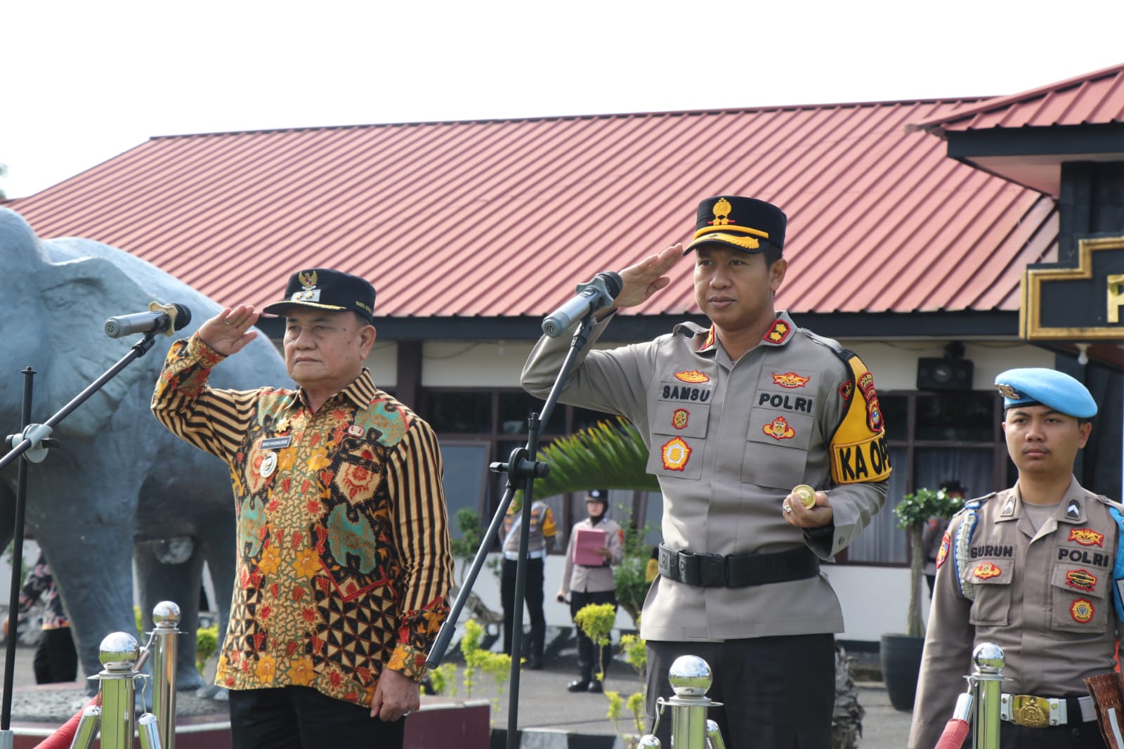 Dalam pelaksanaan apel tersebut, Kapolres Lampung Barat bersama Wakil Bupati Lampung Barat bertindak sebagai Inspektur Upacara. Amanat Kapolri dalam apel gelar pasukan tersebut dibacakan oleh Wakil Bupati Lampung Barat, Drs. Mad Hasnurin.