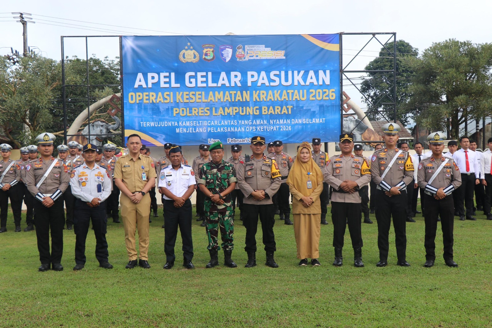 Polres Lampung Barat melaksanakan Apel Gelar Pasukan Operasi Keselamatan Krakatau 2026 yang digelar di halaman Mapolres Lampung Barat, Senin, 02 Februari 2026. Apel tersebut dipimpin oleh Wakapolres Lampung Barat selaku inspektur apel dan diikuti oleh personel Polri, TNI, Dinas Perhubungan, Satpol PP, serta instansi terkait lainnya.
