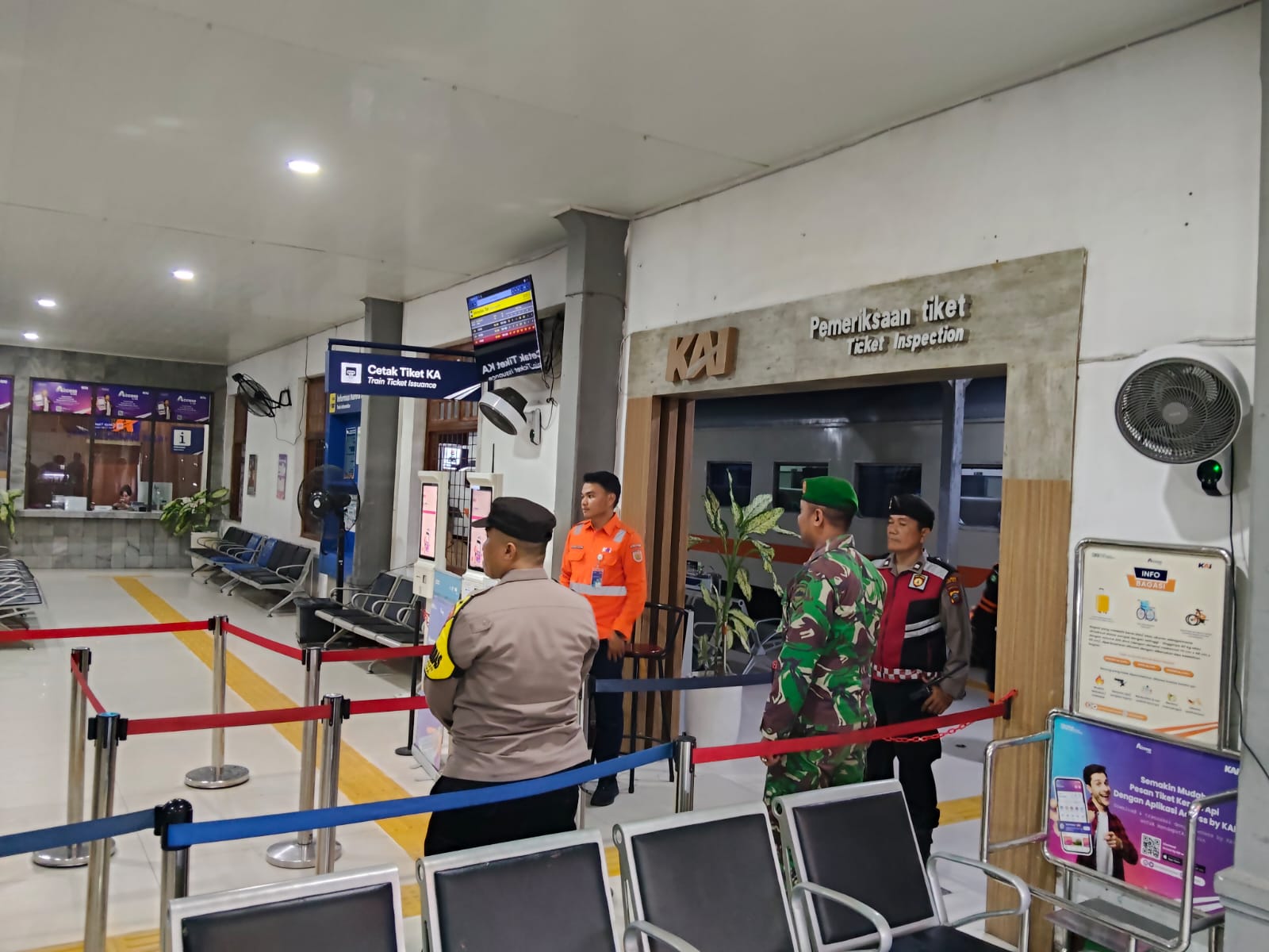 memantau aktivitas naik turun penumpang, serta melakukan pengamanan di pintu masuk (boarding) dan pintu keluar stasiun guna memastikan situasi tetap kondusif.