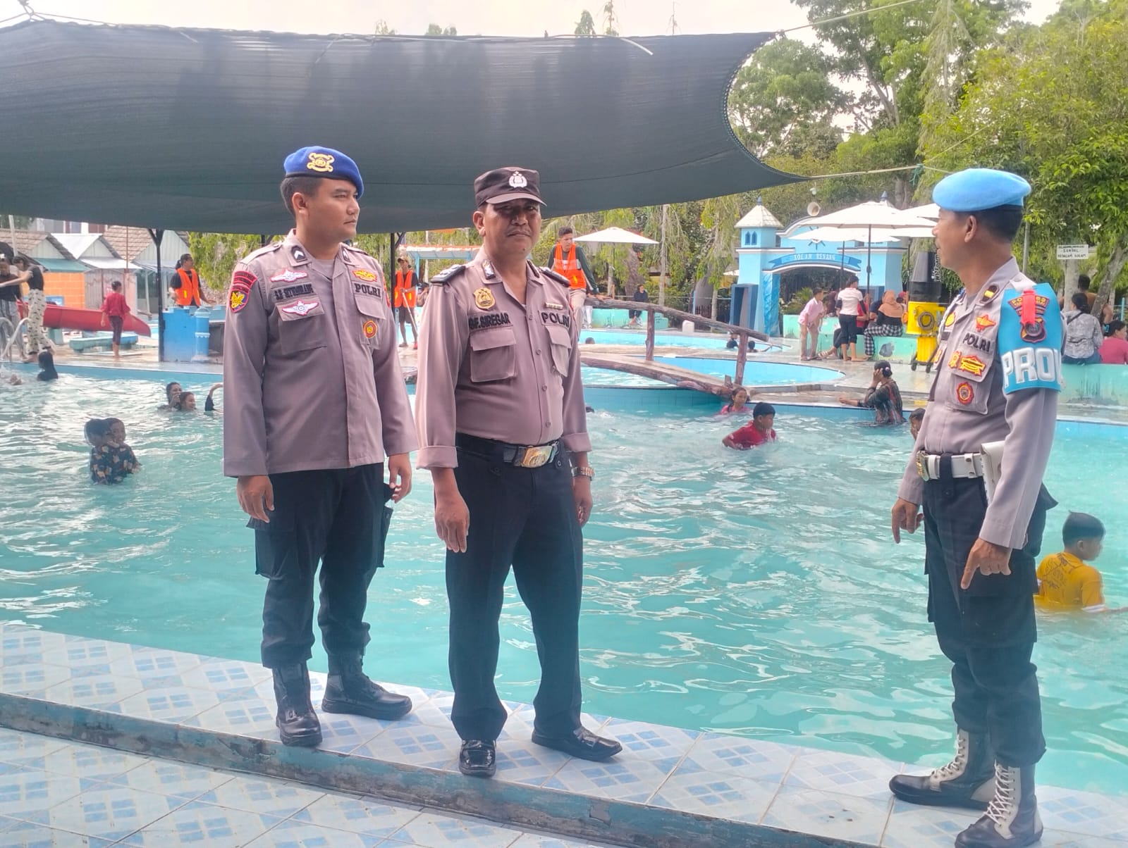 Dalam giat tersebut, personel kepolisian—Aiptu Golpriet Siregar dan Bripda Samson Epa Frans S., SH—tampak aktif berkeliling memberikan imbauan kepada orang tua. Petugas mengingatkan agar para orang tua tidak lepas pengawasan terhadap anak-anak, terutama saat berada di area kolam dalam.