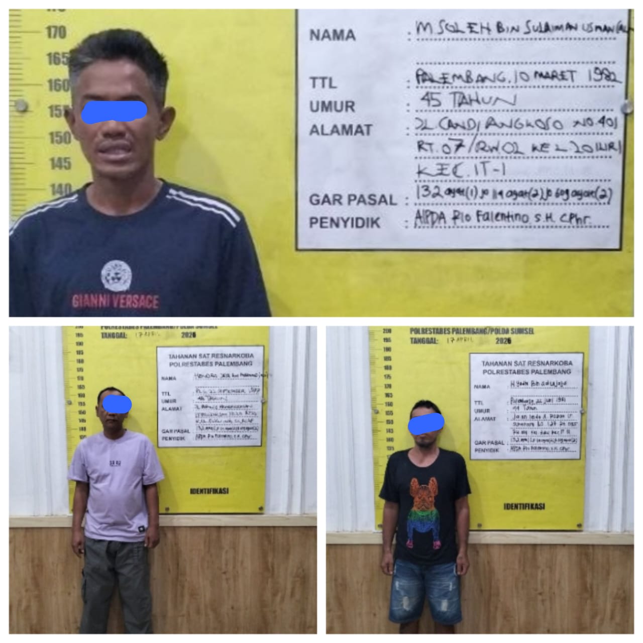 Pengembangan selanjutnya mengarah ke lokasi ketiga di wilayah Banyuasin I, Kabupaten Banyuasin. Di lokasi tersebut, tersangka ketiga berhasil diamankan sekitar pukul 17.00 WIB tanpa perlawanan.