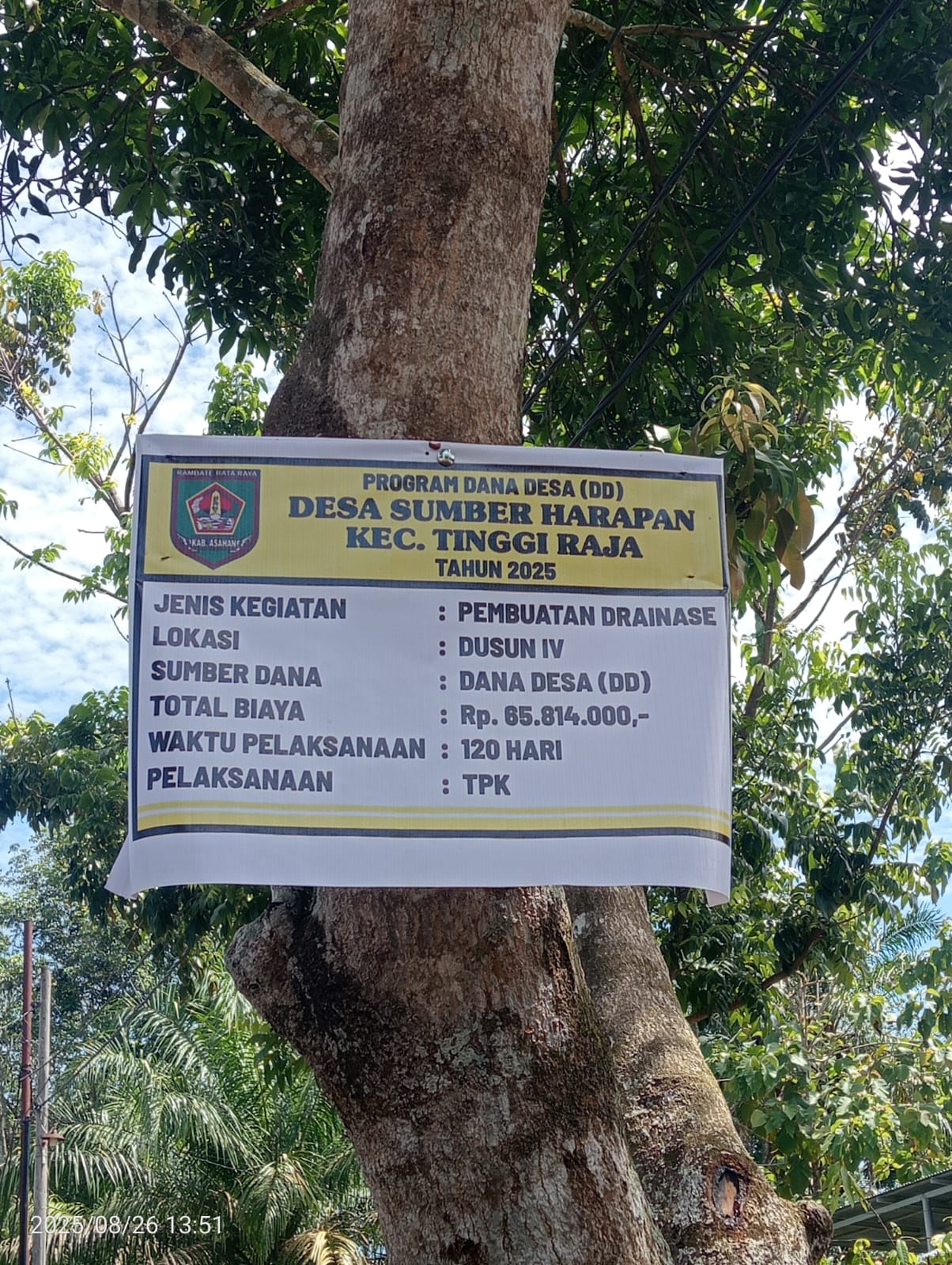 SUMUT _ mitranegaramntv.com – Program Dana Desa (DD) tahun 2025 di Desa Sumber Harapan, Kecamatan Tinggi Raja, kembali menuai sorotan tajam dari masyarakat. Proyek pembuatan drainase di Dusun IV yang menelan anggaran Rp 65.814.000 dinilai janggal karena tidak mencantumkan secara jelas panjang, lebar, maupun volume pekerjaan pada papan informasi proyek.