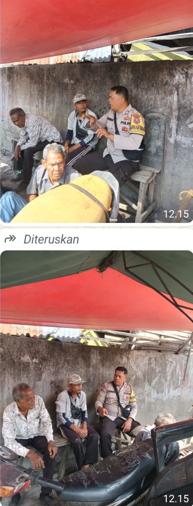 Dalam suasana santai di bengkel milik Pak Asnan, Bripka J. Tarigan berdialog langsung dengan Pak Dadang dan warga sekitar. Kehadiran personel Polri ini bertujuan untuk mempererat silaturahmi sekaligus menyampaikan pesan-pesan keamanan dan ketertiban masyarakat (Kamtibmas) secara humanis.