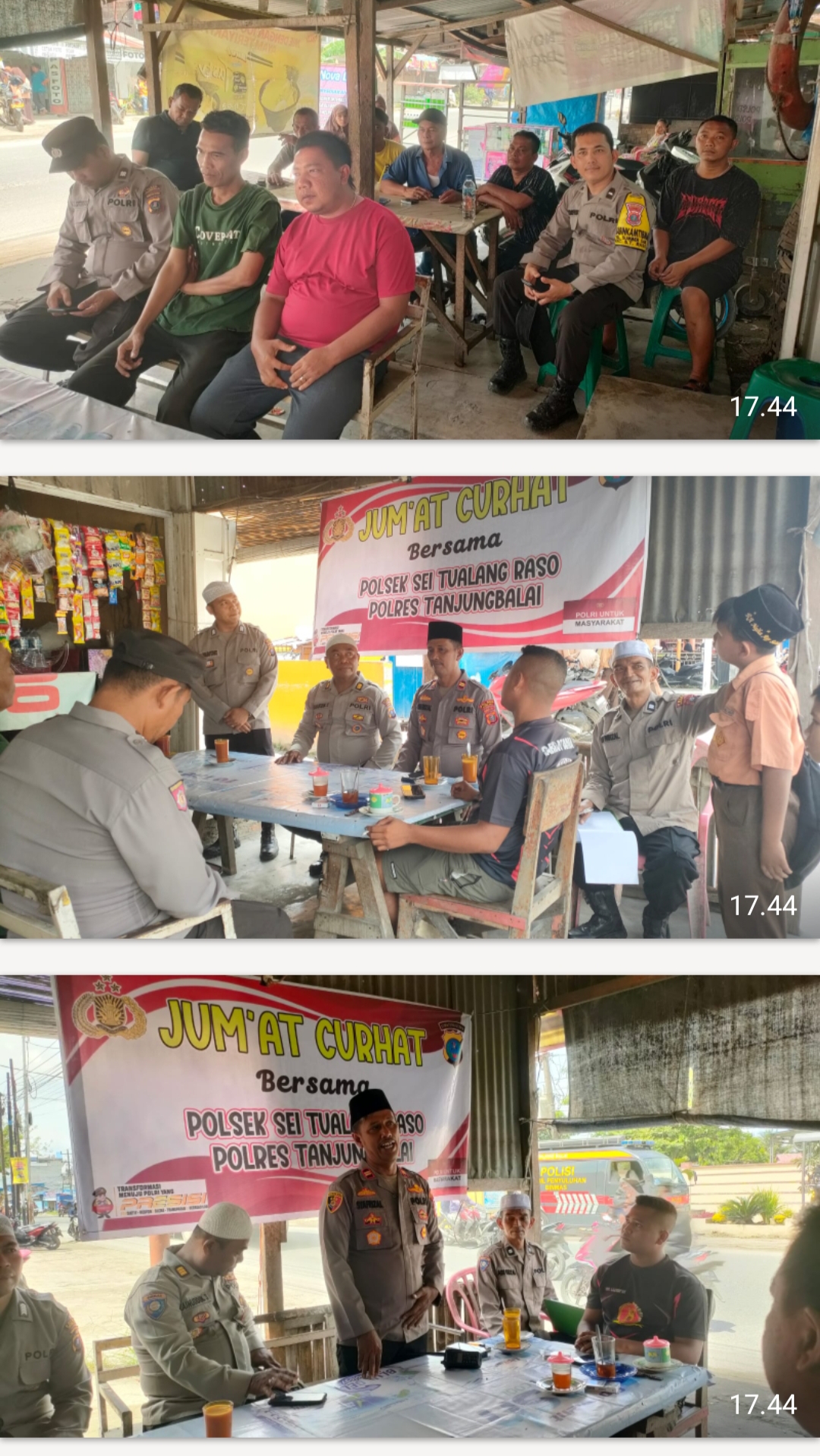 Melalui program “Jumat Curhat” yang digelar di Warkop Pak Tampubolon, Jalan Suprapto, Kelurahan Sumber Sari, Jumat (10/04), Kasat Binmas Polres Tanjung Balai AKP Zainuddin dan Kapolsek Sei Tualang Raso IPTU Syafrizal, S.Sos duduk bersama warga untuk berdialog langsung.