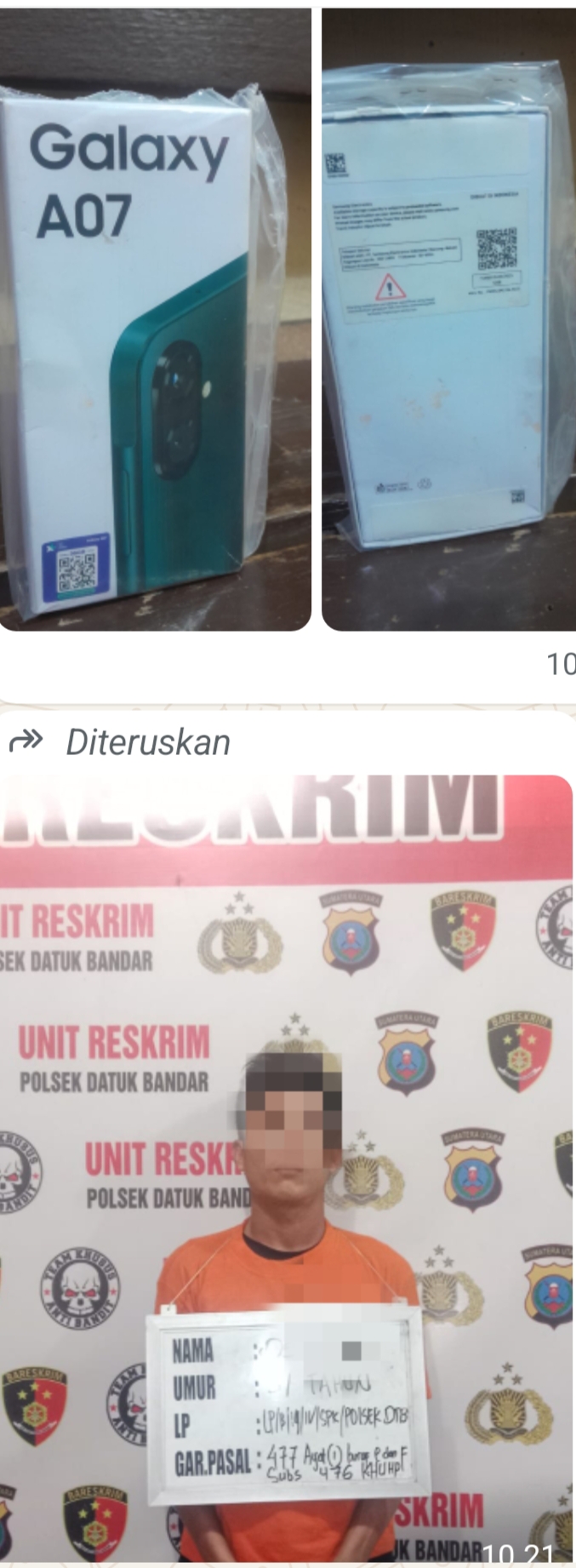 Unit Reskrim Polsek Datuk Bandar Polres Tanjungbalai berhasil menangani perkara tindak pidana pencurian dengan pemberatan (Curat) dengan mengamankan 1 (satu) orang tersangka berinisial D.